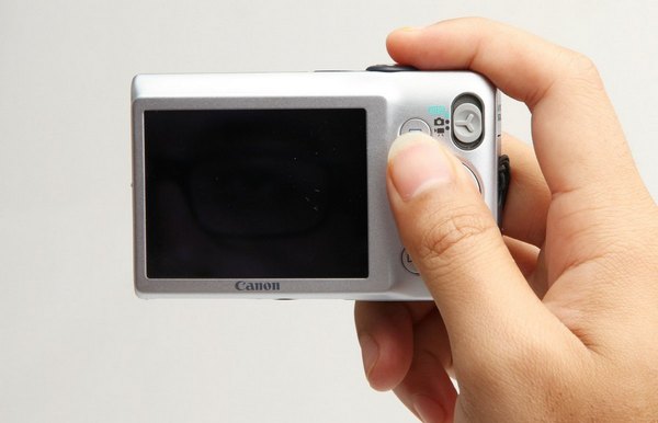 Tampilan di bagian belakang sangat sederhana. Layar 2,7 inci menampilkan gambar preview, playback, dan menu. Layar ini memiliki resolusi 230.000 pixel dengan ketajaman yangbaik. Kecerahan layar juga baik meskipun layar digunakan di bawah terik matahari. Di kanan atas adalah switch mode pemotretan, Full Auto, Program, atau Video. Di sebelahnya adalah tombol playback. Tombol-tombol lainnya sudah sangat familiar bagi pengguna kamera saku pada umumnya, dan Canon pada khususnya.
