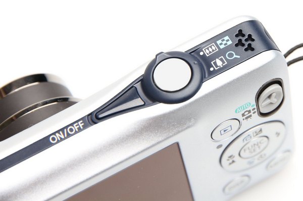 Di bagian atas kamera terdapat tombol power, speaker video playback, tombol shutter dan switch zoom. Zoom dapat bergerak dengan cepat dari posisi terpendek sampai terpanjang, tetapi saat perekaman video hanya zoom digital yang tersedia.