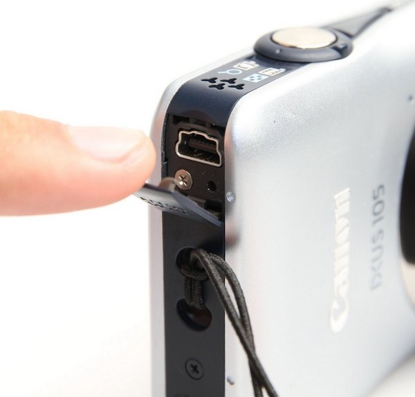 Di sebelah kanan kamera terdapat penutup karet yang melindungi slot A/V Out – Digital. Slot ini berfungsi untuk menghubungkan kamera ke televisi atau ke komputer. Penutup karet yang melindungi slot ini terasa sangat ringkih dan rentan. Kami tidak menyarankan sering-sering menggunakannya.