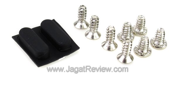 Lucunya, selain kelengkapan standar seperti adaptor dan kabel video-out, kami juga menemukan beberapa sekrup dan dua buah dudukan karet yang dapat digunakan sebagai pengganti dudukan serupa di bawah perangkat A.C. Ryan PlayOn! HD Essential. Bagian dudukan ini rupanya ditempelkan dengan menggunakan semacam double tape sehingga dapat copot dan hilang. Meskipun hal tersebut mungkin tidak akan terjadi, setidaknya A.C. Ryan sudah menyediakan cadangannya.