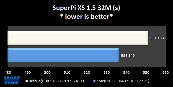 SuperPI adalah satu dari beberapa benchmark favorit para overclocker. Benchmark single-thread ini selain dipengaruhi oleh clockspeed CPU yang digunakan, juga dipengaruhi oleh kecepatan sub-sistem memori. Sebagai contoh, sistem yang memiliki CPU clockspeed sama bisa memiliki hasil yang berbeda jika frekuensi dan/atau latency memorinya berbeda.