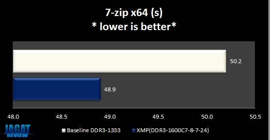 Kecepatan memori yang tinggi pada benchmark sintetik saja tidak cukup untuk menunjukkan performa dari sebuah memory,maka dari itu kami sudah menyiapkan beberapa custom benchmark dengan menggunakan aplikasi yang biasa anda temui sehari-hari. Sebagian dari aplikasi ini banyak dipengaruhi oleh performa CPU dan juga storage anda, sehingga mungkin peningkatan yang didapatkan dari penggunaan memori berkecepatan tinggi tidak terlalu signifikan, tapi meskipun demikian, peningkatan performa ini tetap masih bisa digunakan sebagai indikator bagaimana sebuah memory kit bisa meningkatkan kinerja sistem anda.