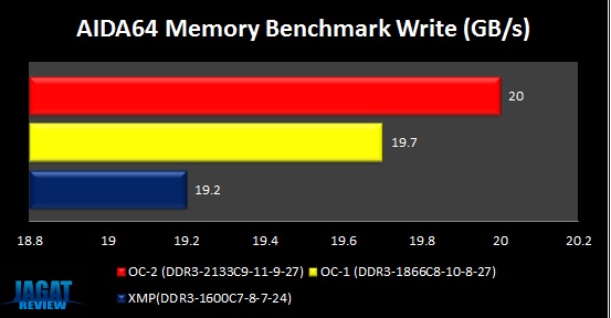 Seperti dugaan kami sebelumnya, performa RAM ini setelah dioverclock meningkat cukup signifikan dari performance XMPnya. Read Bandwidth memory ini dapat mencapai 22.7GB/s dengan mudah pada konfigurasi DDR3-2133 Cl9-11-9-27, waktu perhitungan SuperPI 32M juga menjadi lebih cepat 12 detik dengan penggunaan konfigurasi ini.