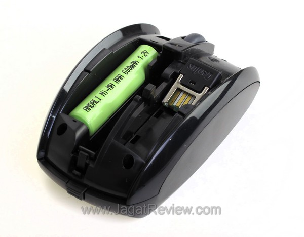 Satu feature tambahan yang terbilang cukup unik dari Genius LuxeMate R820 adalah tersedianya sebuah charger USB. Charger ini dapat digunakan untuk mengisi ulang baterai rechargeable ukuran AAA yang juga disertakan dalam kemasan penjualan (3 buah). Cukup tancapkan charger ini ke salah satu port USB yang tersedia, dan Andapun bisa mengisi ulang tenaga baterai.