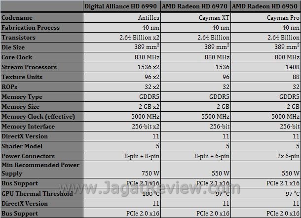 Sebelumnya kami telah me-review VTX3D AMD Radeon HD 6990. Produk tersebut merupakan Antilles pertama yang kami uji di Lab JagatReview. Saat ini kami kembali kedatangan “monster” bertenaga dua buah CaymanXT ini. Produk yang mampir ke kantor kami berasal dari brand lokal yang mungkin sudah tidak asing lagi, yaitu Digital Alliance. Graphics card tersebut bernama Digital Alliance HD 6990. Brand tersebut memang cukup dikenal karena keunggulan value yang ditawarkan dibandingkan brand/merek graphics card lain. Kali ini mereka mencoba untuk bermain di kelas flagship/enthusiast. Faktanya user di level ini tidak terlalu banyak apabila dibandingkan dengan user segmen entry level ataupun mainstream user.