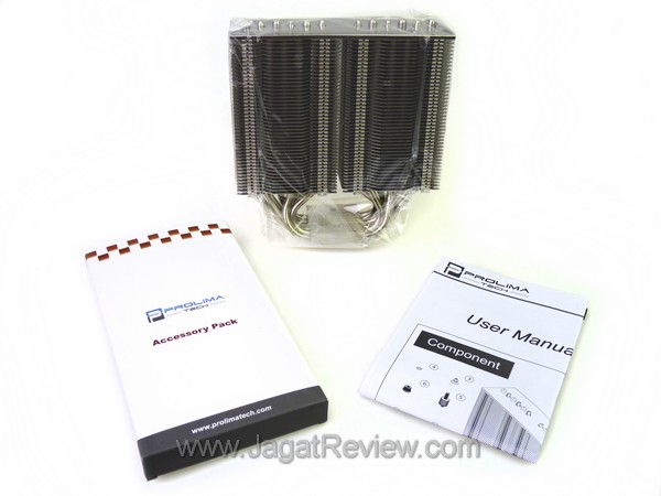 Kemasan Prolimatech ini cukup unik. Kotak yang membungkus heatsink ini termasuk kecil jika dibandingkan dengan kotak heatsink lainnya. Kemasannya yang unik membuat kami sempat bingung membukanya. Ternyata untuk membuka kotak ini, Anda cukup menekuk dua pengait yang ada di bagian kiri dan kanan.