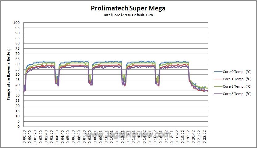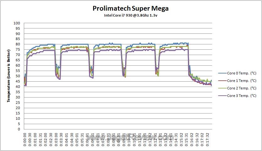 Kombinasi sirip-sirip heatsink yang terdiri dari tembaga dan aluminium akhirnya menunjukkan kelebihannya di pengujian kedua. Keunggulan Prolimatech Super Mega ini tampak ketika kami sudah melakukan overclock pada sistem pengujian. Suhu maksimal yang unggul satu derajat dari Noctua NH-D14 membuat kami terkagum karena ukuran Noctua NH-D14 yang lebih besar dan juga sudah menggunakan konfigurasi fan push-pull.