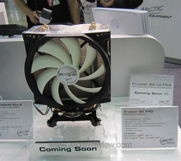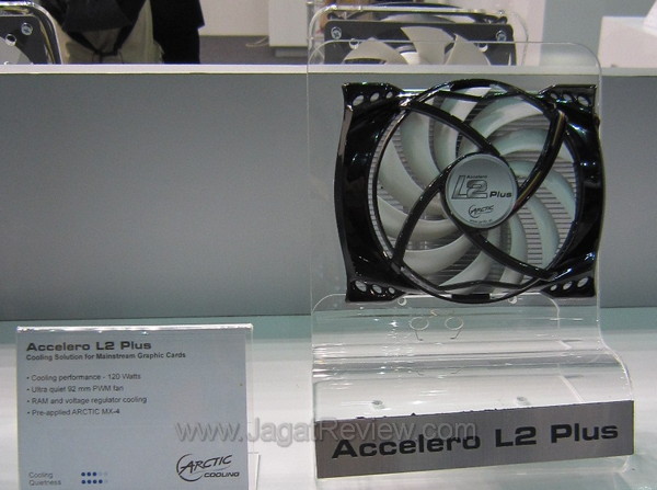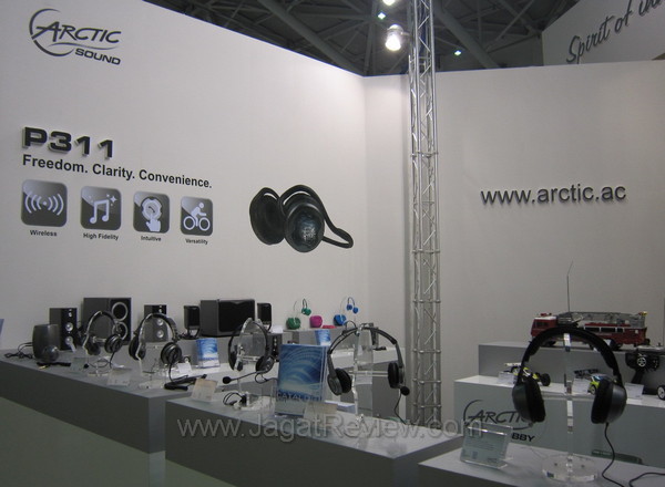 Pengembangan sayap Arctic yang mulanya produsen heat sink sangat terasa pada booth mereka. Beragam jenis perangkat selain heat sink dapat kami temui di sini. Beberapa produk terbaru yang dipajang di booth mereka adalah keyboard, IR Media Center remote control, dan perangkat audio. Tahun ini Arctic akan memperkuat produk audionya mulai dari tingkat pengguna casual hingga gamer. Headphone wireless P311 yang pernah kami review sebelumnya muncul kembali dengan berbagai variasi warna karena keberhasilannya di Eropa. Saat ini produk unggulan thermal paste dan termalpad Artic masih menjadi pilihan populer bagi penggemar OverClocking.