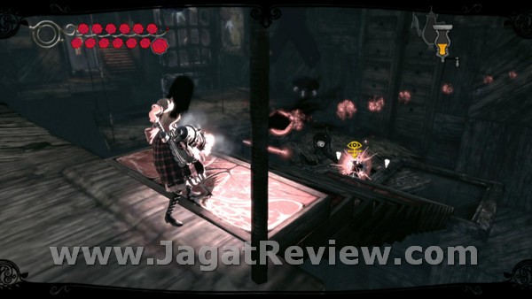 Anda akan diberikan pilihan senjata untuk mengalahkan setiap musuh yang ada. Anda akan memiliki Vorpal Blade – senjata yang tidak terlalu kuat namun cepat, Hobby Horse – senjata lambat dengan damage besar, Pepper Grinder yang berfungsi tak ubahnya sebuah gatling gun, Teapot Cannon yang sedesktruktif sebuah grenade launcher, Clock bom sebagai bom waktu dan pemberat di puzzle, dan Umbrella yang dapat digunakan sebagai pelindung. Anda memiliki kebebasan untuk menggunakan setiap dari senjata ini. Namun satu hal yang perlu diingat, beberapa musuh membutuhkan strategi tertentu untuk dikalahkan. Anda memang bisa mengandalkan brute force, namun tidak selamanya akan berhasil. Bisa jadi, Anda yang akan tewas.