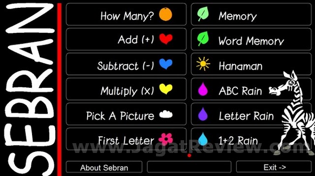 Beberapa waktu yang lalu, kami pernah me-review sebuah software pendidikan untuk anak berusia hingga lima tahun, MiniSebran. Sekarang, saatnya bagi sang kakak untuk belajar. Aplikasi yang satu ini tentunya berbeda dengan MiniSebran yang berisi berbagai kegiatan level dasar. Sebran dapat dikatakan sebagai aplikasi lanjutan dari MiniSebran. Sebran dapat digunakan oleh anak-anak dengan rentang usia empat sampai sembilan tahun. Di usia ini, anak-anak biasanya lebih memilih bermain dibandingkan belajar. Di sinilah peran aplikasi ini untuk menciptakan suasana bermain sambil belajar.