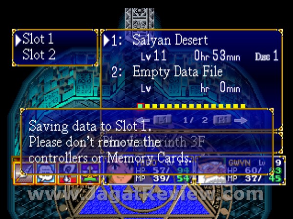 Jika game biasa menuntut Anda menuju ikon tertentu untuk menyimpan data permainan, Lunar menawarkan sesuatu yang lebih menawan. Anda bisa melakukan save dimana saja dan kapan saja. Menu ini selalu terbuka kapanpun Anda membutuhkannya. Namun sedikit kewaspadaan perlu dihadirkan, jangan sampai kita melakukan save saat menghadapi situasi yang kritis. Bisa jadi permainan akan menjadi stagnan.