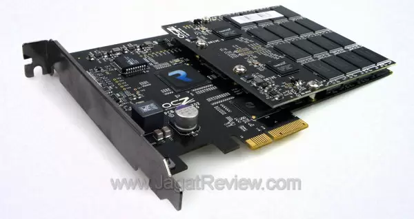 Not so long ago, we received another “SSD Card” from OCZ: The Revo DriveX2. This time though, instead of a single board construction used by the first revision of RevoDrive, OCZ screws a sisterboard containing additional flash memory chips (and their corresponding SandForce controllers) onto the main PCB. The “X2” suffix may be referring to this.