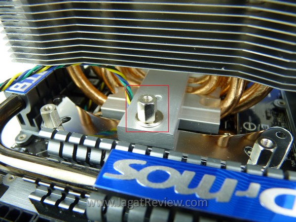Pengunci yang disediakan Xigmatek ini cukup mengejutkan kami karena jika keduanya dikunci hingga mentok, tekanan yang diberikan juga sangat tinggi hingga sempat membuat motherboard pengujian kami bengkok cukup parah. Oleh karena itu, kami sedikit melonggarkan pengunci tersebut hingga batas yang kami anggap aman.