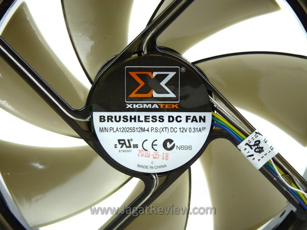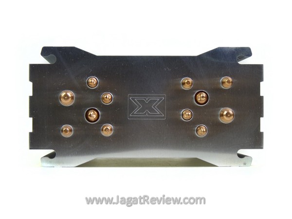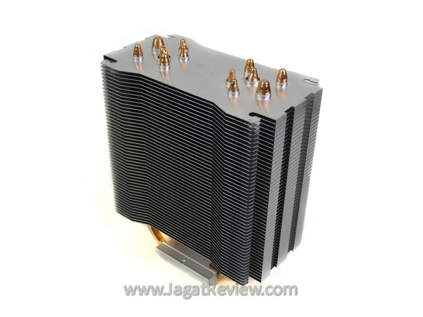 Inilah tampilan heatsink Xigmatek dengan penerapan Dual Layer H.D.T. Heatsink ini dipenuhi sirip aluminium dengan bagian dasar heatpipe yang berbahan dasar tembaga. Tampak dari atas jumlah heatpipe heatsink ini sebanyak 6 buah.
