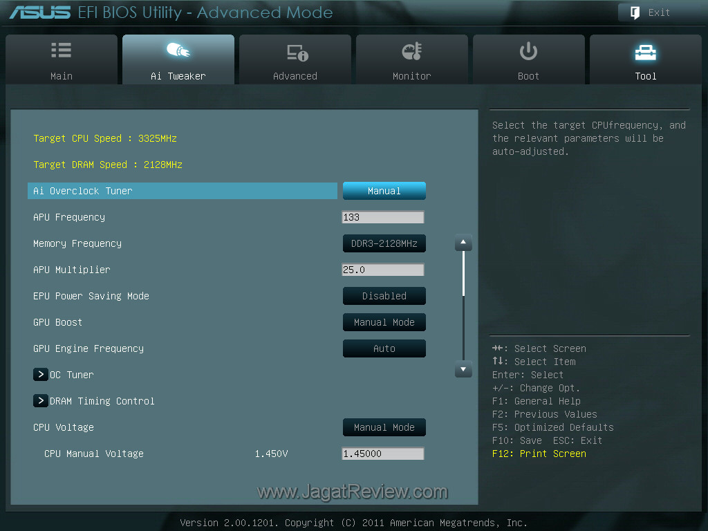 - APU Multiplier (a.k.a CPU Multiplier) = 25x (total CPU Clock = 3325Mhz)