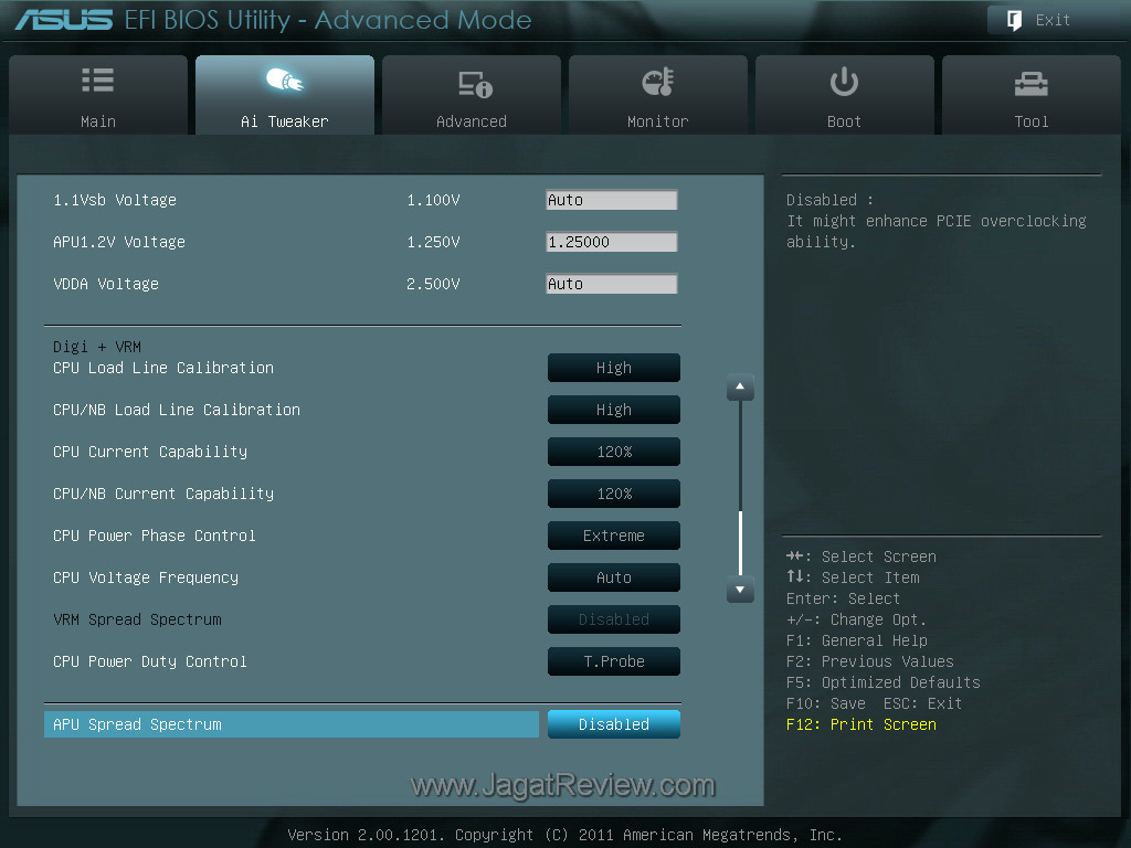 Secara garis besar, variabel utama yang memegang peranan penting adalah APU Frequency (umumnya disebut BCLK), dimana jika BCLK ditingkatkan, Frekuensi RAM dan iGPU juga otomatis meningkat. Frekuensi RAM yang ada di DDR3-2128 memang terlihat tinggi, namun spesifikasi dari RAM Kingston HyperX Genesis kami mendukung kecepatan hingga DDR3-2133. Yang terakhir, dengan menggunakan BCLK sebesar 133Mhz, Grafik terintegrasi AMD Radeon HD 6410D yang tertanam di prosesor A4-3400 bisa berjalan pada clock 800Mhz , dengan perhitungan Final GPU clock = (BCLK OC / BCLK Default )* Defaut GPU Clock.