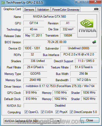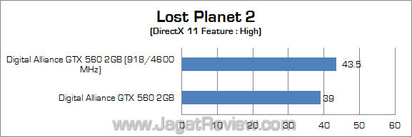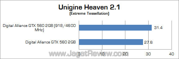 Digital Alliance GTX 560 2GB yang kami terima mampu di-overclock hingga 918 MHz untuk clock GPU dan 4600 MHz untuk clock memori dengan menggunakan setting kecepatan kipas Auto dan setting voltase default.
