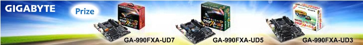 Sebagai apresiasi dari Gigabyte atas usaha ke-3 pemenang di atas, Pemenang kompetisi kali ini akan membawa pulang motherboard GIGABYTE 990FXA-UD7, pemenang ke-2 mendapat GIGABYTE 990FXA-UD5 , serta urutan ke-3 akan dihadiahi GIGABYTE 990FXA-UD3.