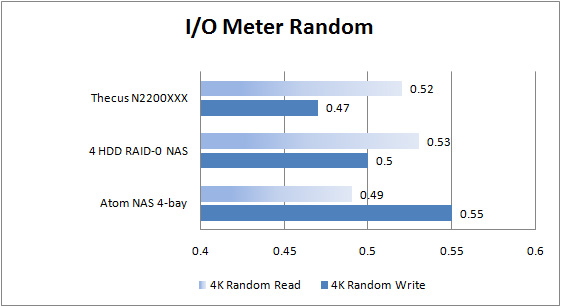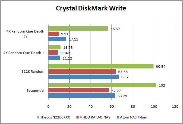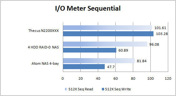 Kinerja random read/write dari Thecus N2200XXX sedikit tertinggal dari unit NAS pembanding dalam pengujian. Akan tetapi, dalam hal sequential read/write performance, NAS ini mampu membuahkan kecepatan baca-tulis di atas 100 MB/s.