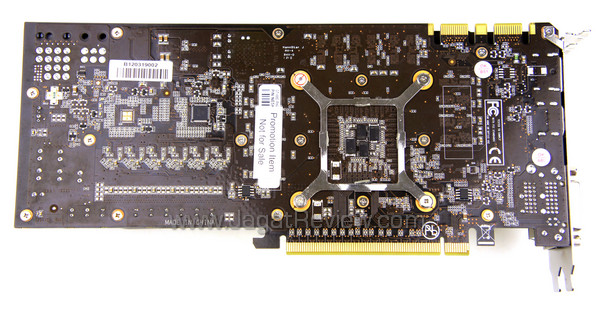 Sisi bawah PCB memperlihatkan Gainward telah melakukan perombakan pada desain dan penempatan komponen pada PCB.