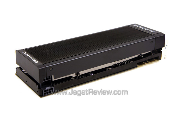 Inilah Gainward GTX 680 Phantom II. Sekilas dilihat, penampilan graphics card ini memang terlihat seperti balok berwarna hitam. Sistem pendingin yang digunakan memang membuat penampilan graphics card ini terlihat seperti itu.