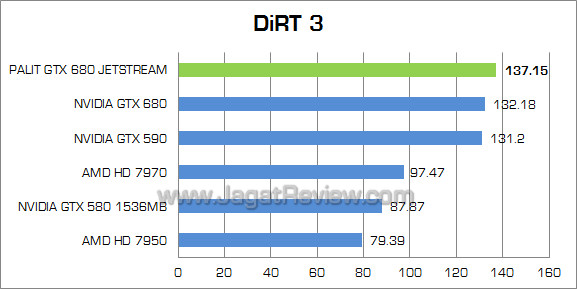 Game racing DirectX 11 ini menunjukkan keunggulan sekitar 3% di Palit GTX 680 JetStream atas GTX 680 reference.