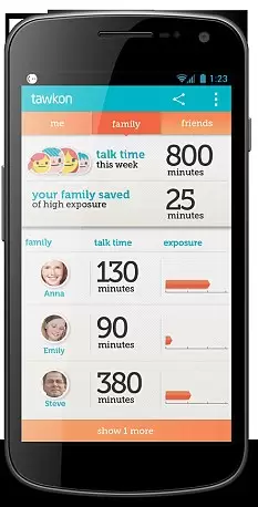 Aplikasi untuk Android yang satu ini mungkin dapat membantu pengguna memantau pancaran radiasi yang mengenai tubuh mereka. Aplikas bernama Tawkon ini dapat memeringatkan penggunanya saat terjadi pancaran radiasi yang tinggi. Tidak hanya itu saja, aplikasi ini juga memberikan berbagai tips untuk menurunkan level radiasi yang sedang terjadi—dengan cara menjauhkan telepon dari telinga, menggunakan handsfree atau menutup percakapan yang sedang dilakukan.