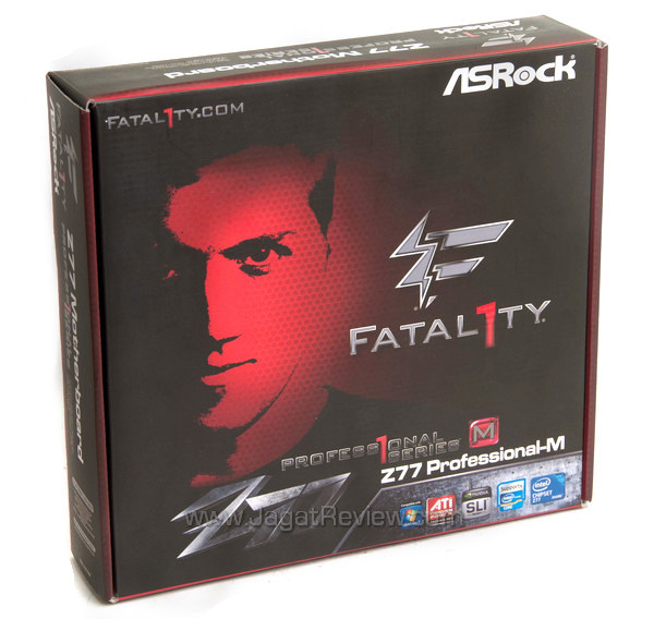 Sama seperti seri “Fatal1ty” lainnya, wajah Jonathan Wendel kembali menghiasi sisi depan kemasan motherboard Fatal1ty Z77 Professional-M.