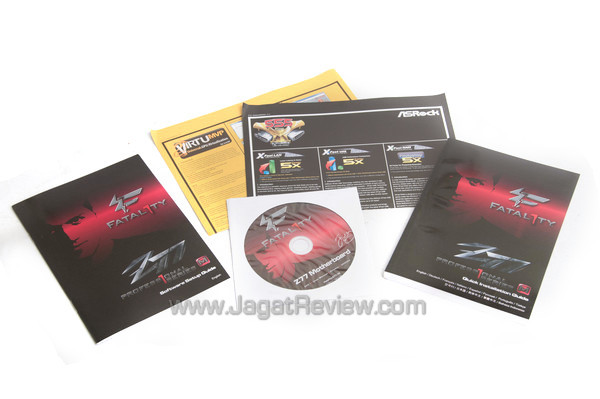 Perlengkapan yang disertakan tergolong memadai untuk kebutuhan pengguna pada umumnya bahkan bagi pengguna yang baru pertama kali membangun sistem. ASRock memberikan: