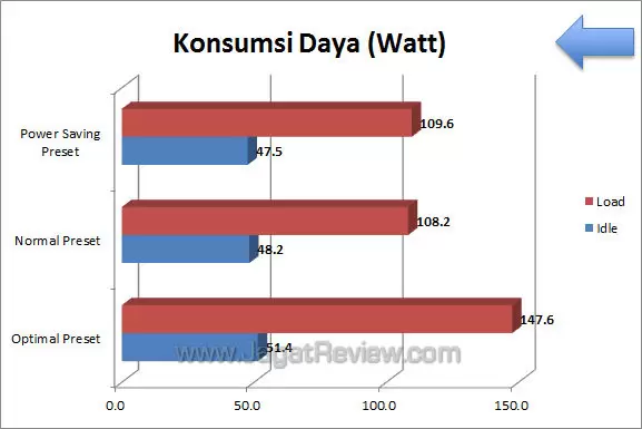Preset Power Saving ternyata tidak memberikan perubahan yang signifikan pada segi konsumsi daya.