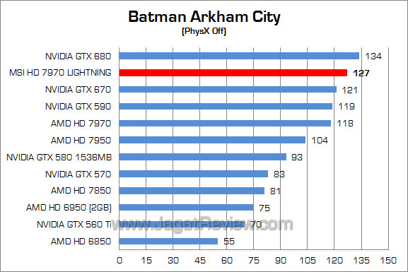 Game superhero dengan Unreal Engine ini menunjukkan keunggulan MSI HD 7970 Lightning sekitar 7% di atas HD 7970.