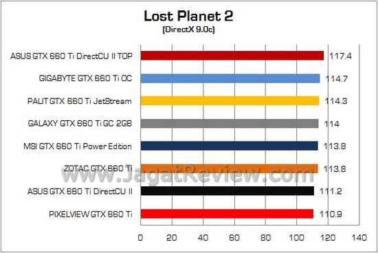 Game dengan setting planet bersalju ini memang asik untuk dimainkan terutama pada mode multiplayer. ASUS (TOP) dan Gigabyte saling bersaing baik pada setting DirectX 11 maupun DirectX 9.0c, persaingan marginal di bawah 1fps terjadi pada ketiga peserta Palit (Digital Alliance), Galaxy, dan MSI.