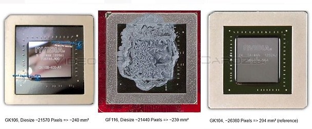 Kabar pertama adalah penampakan foto chip GPU GK106. Chip GPU ini akan menjadi otak dibalik GeForce GTX 660. GK106 memiliki ukuran tidak jauh berbeda dengan chip GPU GF116 tetapi memiliki ukuran lebih kecil dibandingkan chip GPU GK104.