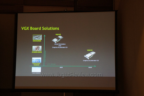 Selain NVIDIA VGX K2, terdapat pula VGX K1 yang dilengkapi 4 buah chip GPU Kepler dengan 16GB memori GDDR5.