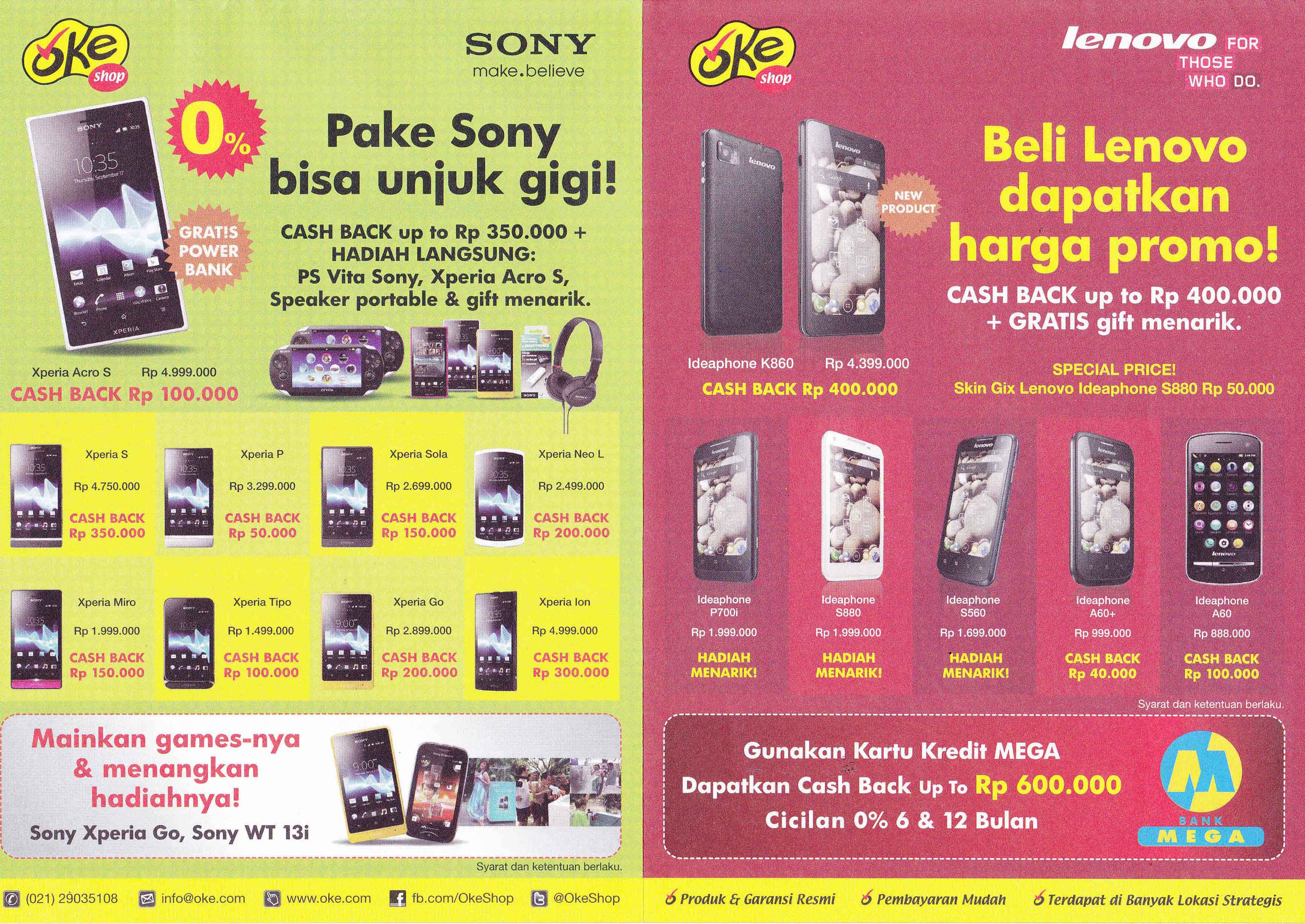 - Xperia S: Rp 4.750.000,- (Cashback Rp 350.000,-)