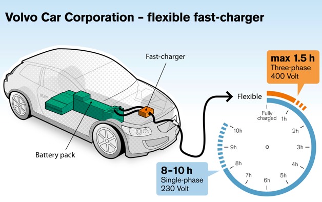 Fast-charger berdaya 22 kW baru itu merupakan charger pertama yang beroperasi dalam tiga fase dan akan dibenamkan dalam sejumlah mobil Volvo C30 Electric. Charger tersebut menyuguhkan dua pilihan cara pengisian daya, yaitu menggunakan outlet tiga fase dengan 32A yang mampu mengisi daya baterai dalam waktu 1,5 jam atau menggunakan outlet rumah dengan waktu pengisian daya antara 8—10 jam.