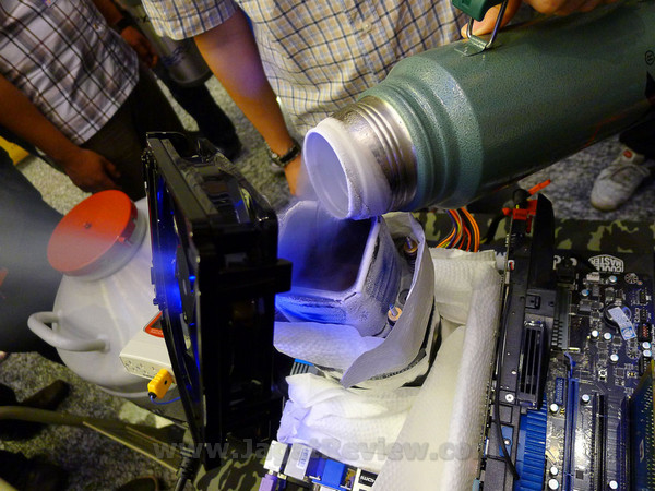 Sebagai tambahan untuk membuat acara overclocking ini makin menarik, pihak panitia mengundang salah satu overclocker yang terkenal di Surabaya yakni Indra dari Team ARX / Berliancom dan juga seorang guest overclocker dari Jakarta : Alva “Lucky_n00b” Jonathan, untuk memberikan demonstrasi extreme overclocking menggunakan Liquid Nitrogen (LN2).