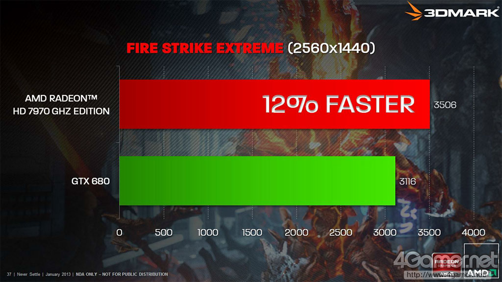 Belum diketahui hal apakah yang menyebabkan AMD menunda peluncuran graphics card seri HD 8000 mereka hingga beberapa bulan ke depan. Sementara itu, slide presentasi lainnya mengenai hasil benchmark graphics card AMD seri HD 7000 melawan NVIDIA seri GTX 600 pada aplikasi 3DMark keluaran terbaru seakan memperlihatkan graphics card Southern Island mereka masih memiliki kekuatan baik untuk bersaing maupun untuk melewati tahun 2013 ini. Terlebih terdapat rumor lain yang menyebutkan bahwa graphics card NVIDIA seri GTX 700 juga akan mengalami penundaan hingga kuartal 4 tahun 2013.