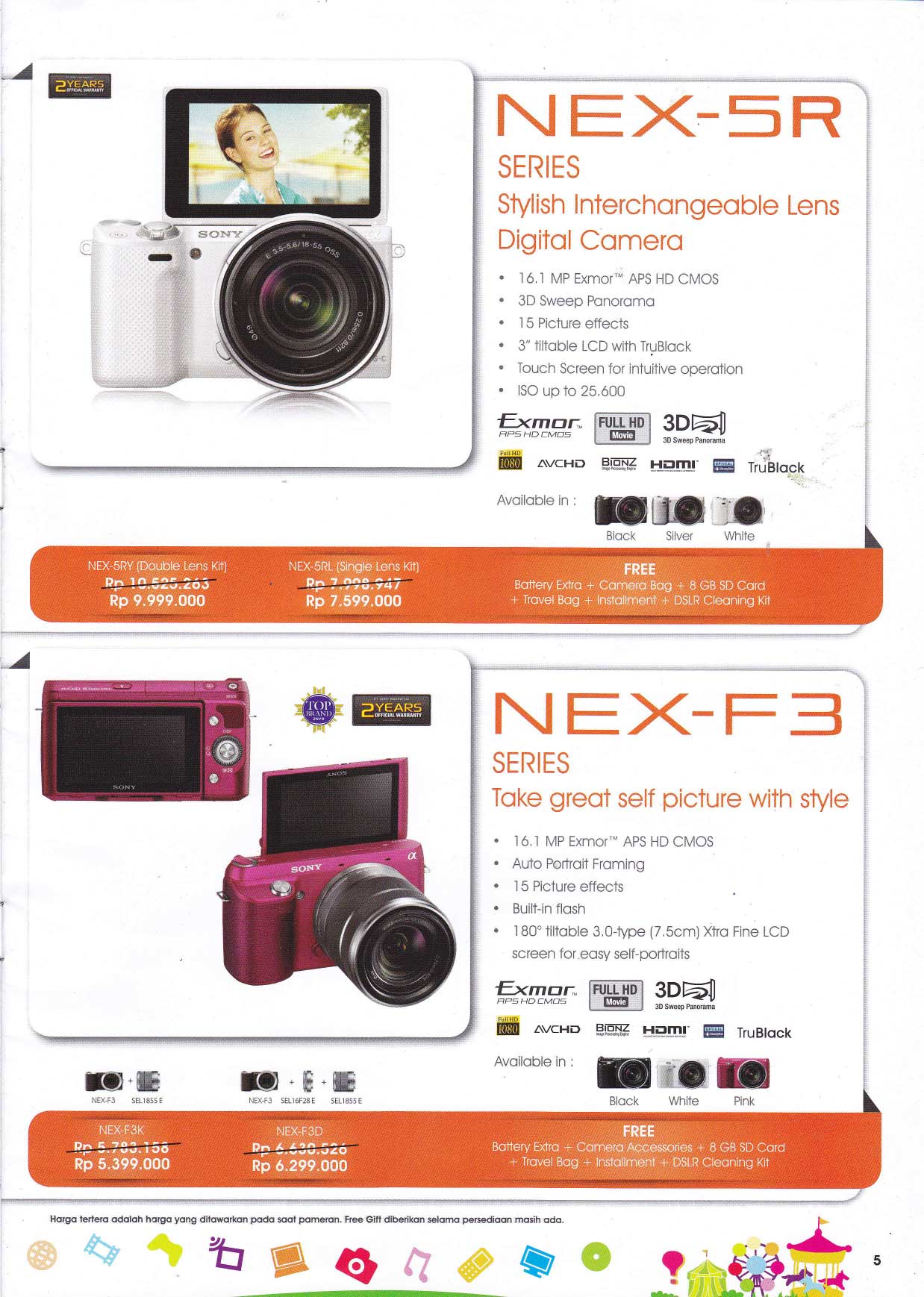Nex-5RY (Double Lens Kit): Rp 10.525.263,- menjadi Rp 9.999.000,-