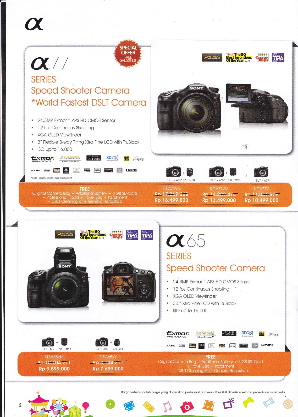 α77 SLT-A77V: Rp 11.051.579,- menjadi Rp 10.499.000,-