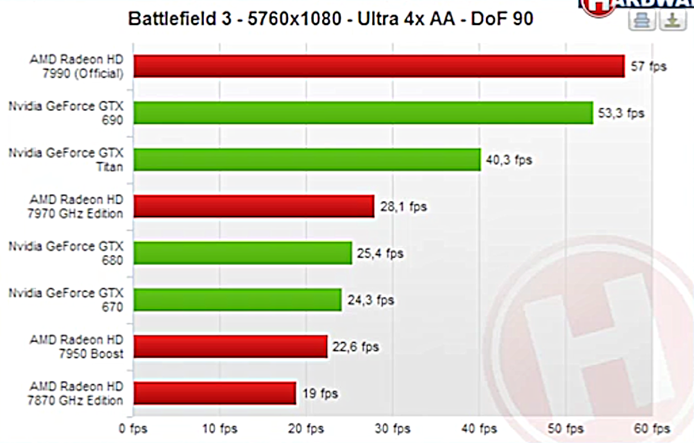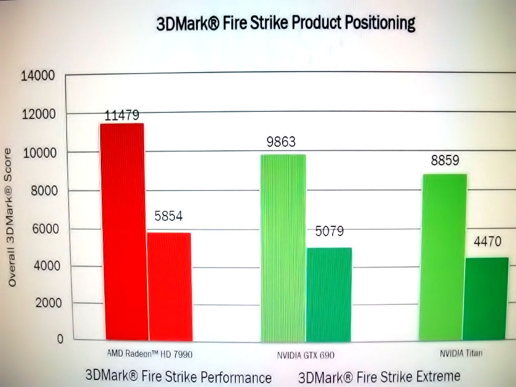 Melihat gambar grafik performa Radeon HD 7990 di atas tidak aneh jika AMD menempatkan graphics card ini untuk bersaing dengan GeForce GTX 690 dan GTX TITAN. Dengan skor 11479 pada 3DMark Fire Strike, Radeon HD 7990 memiliki performa sekitar 16% lebih bertenaga dibandingkan GTX 690 dan sekitar 29% lebih bertenaga dibandingkan GTX TITAN. Sementara itu, pada pengujian di game Battlefield 3, Radeon HD 7990 unggul sekitar 6% di atas GTX 690 dan sekitar 41% lebih kencang di atas GTX TITAN.