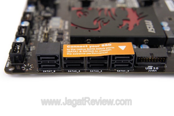 Sepintas, layout dan komponen dari motherboard ini mengingatkan kami pada motherboard MSI Z77A-GD65 biasa, dan hanya berbeda dari warna dan bentuk heatsink-nya saja. Lalu apa yang benar-benar membedakan motherboard seri GAMING ini dengan seri ‘biasa’ ?
