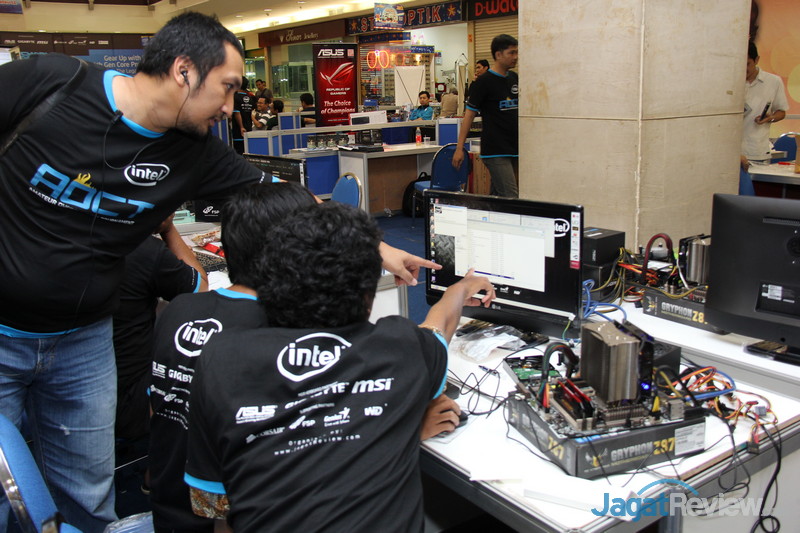 Sesi pertama, yang menggunakan motherboard dari Asus, disertai dengan mini OC competition yang mempertandingkan Max Base Clock (BCLK). Setelah mencoba beberapa saat, peserta bisa mencatatkan BCLK yang cukup jauh di atas standar dan inilah 3 peserta yang catatan BCLK-nya menjadi 3 yang terbaik dan membawa mereka memperoleh hadiah: