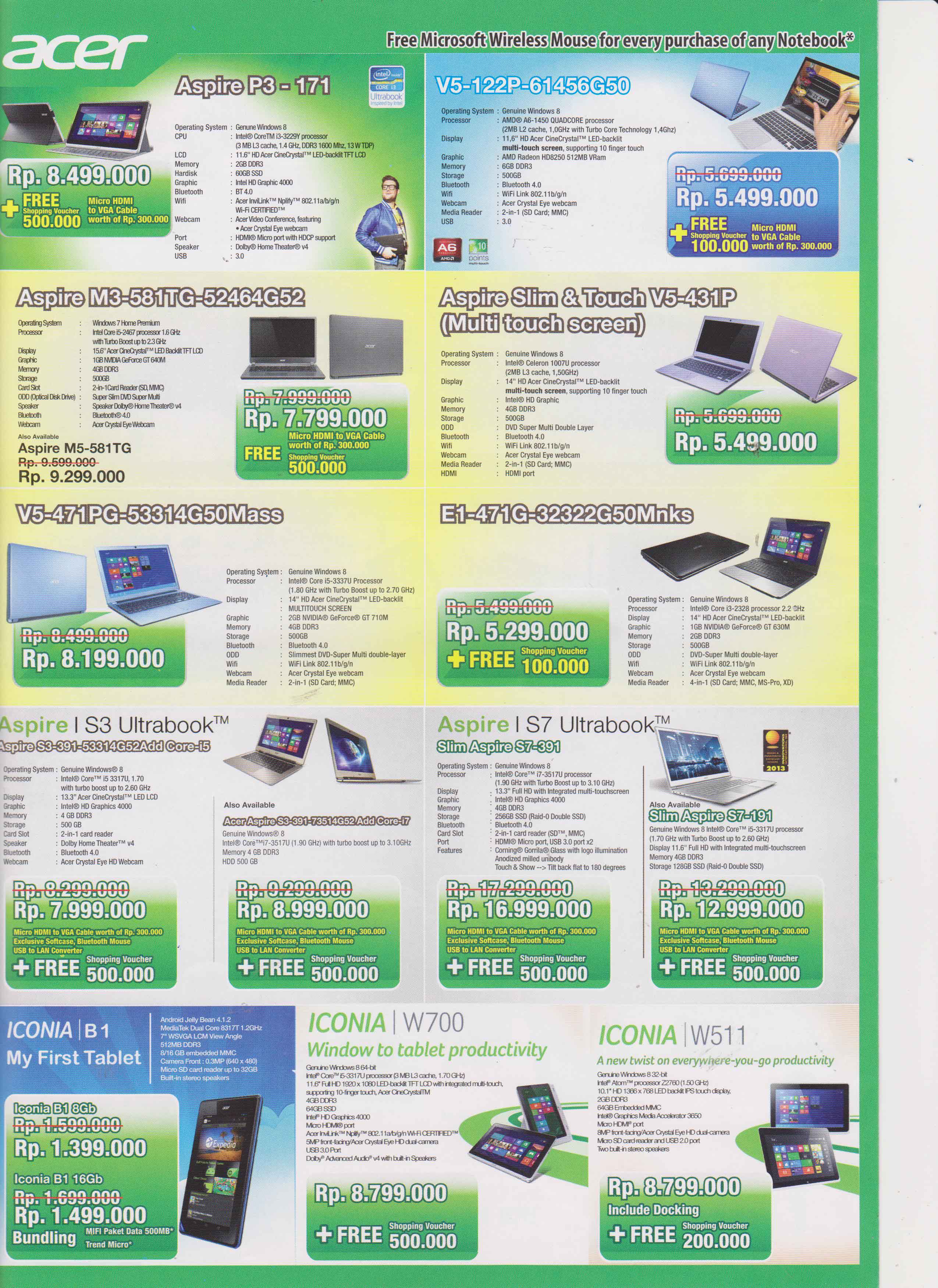 Aspire E1 (i3-3110): Rp 5.199.000,- menjadi Rp 4.999.000,-