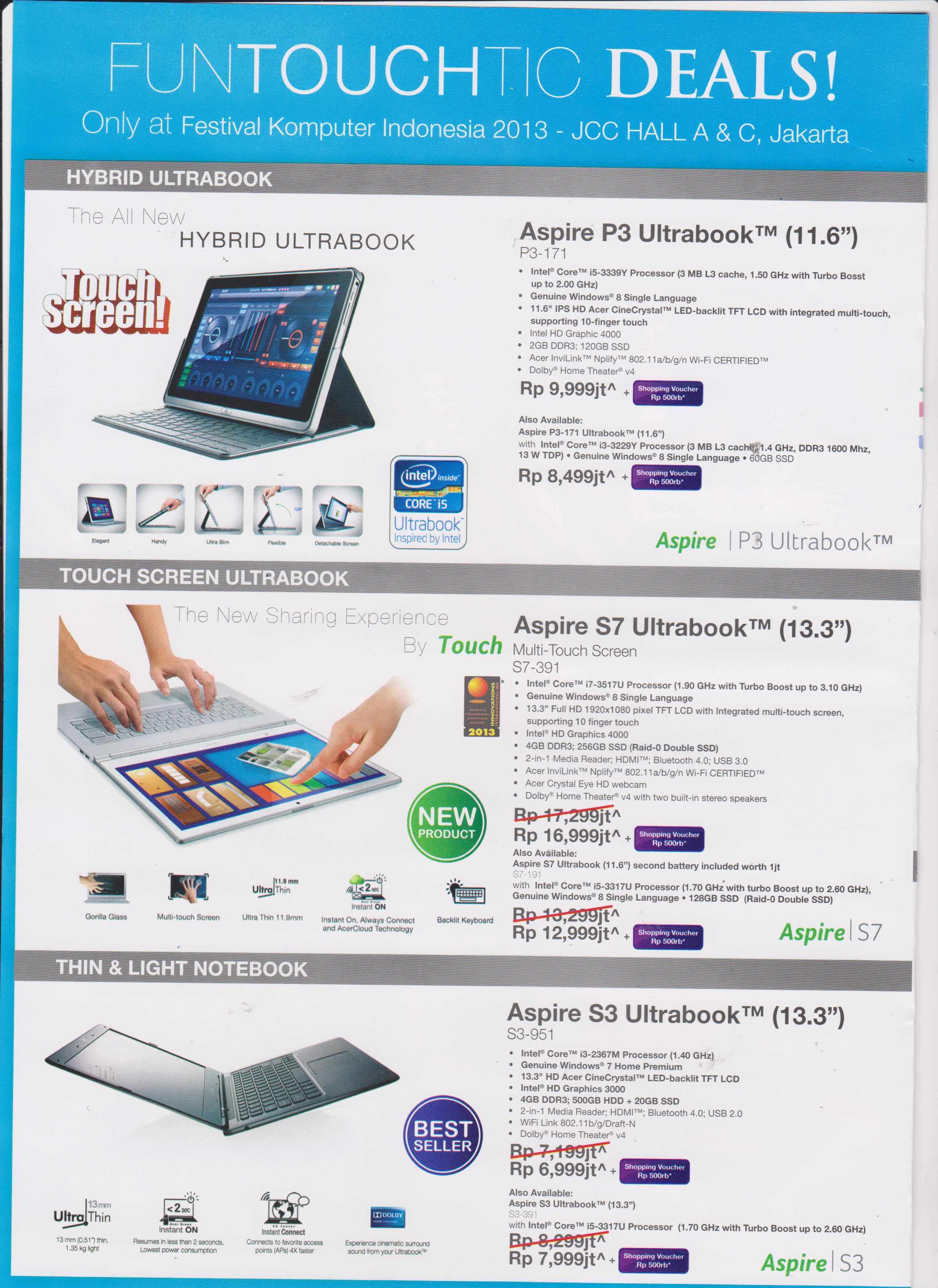 Aspire S3 Ultrabook (i7): Rp 9.299.000,- menjadi Rp 8.999.000,-