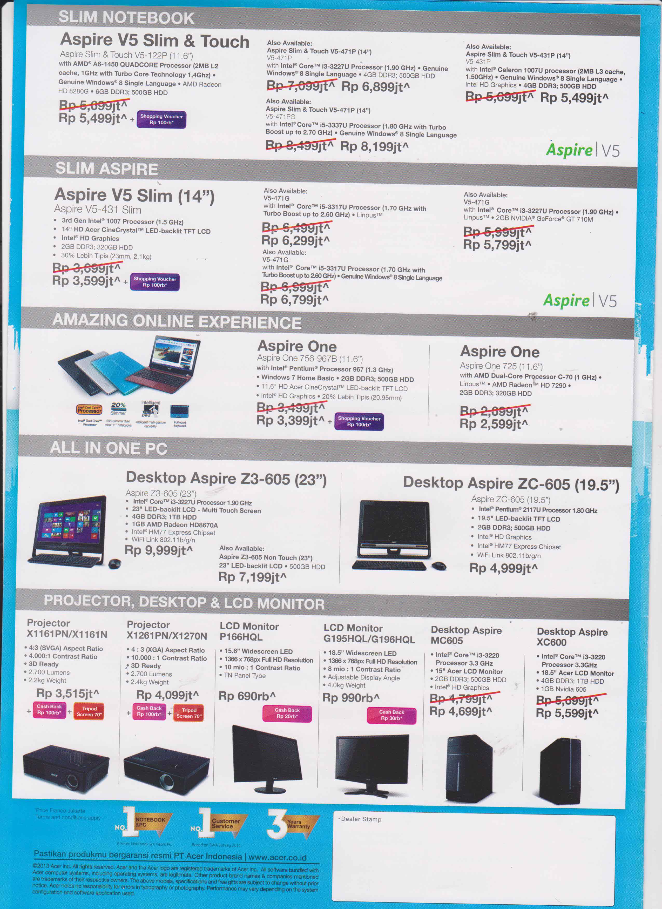 Aspire V5 (i3-3227U): Rp 7.099.000,- menjadi Rp 6.899.000,-