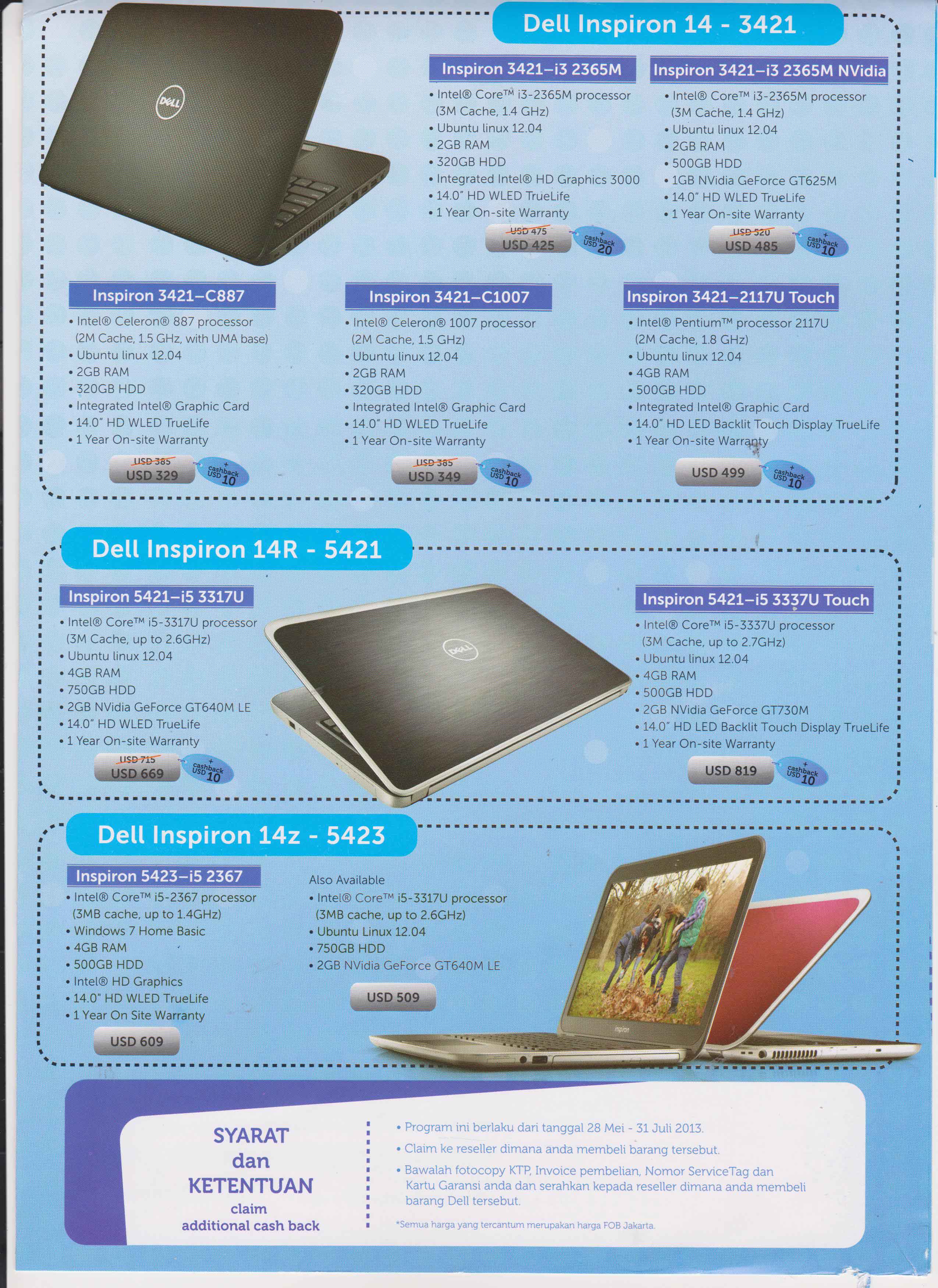 Dell Inspiron 5421-i5 3317U : USD 715 menjadi USD 669