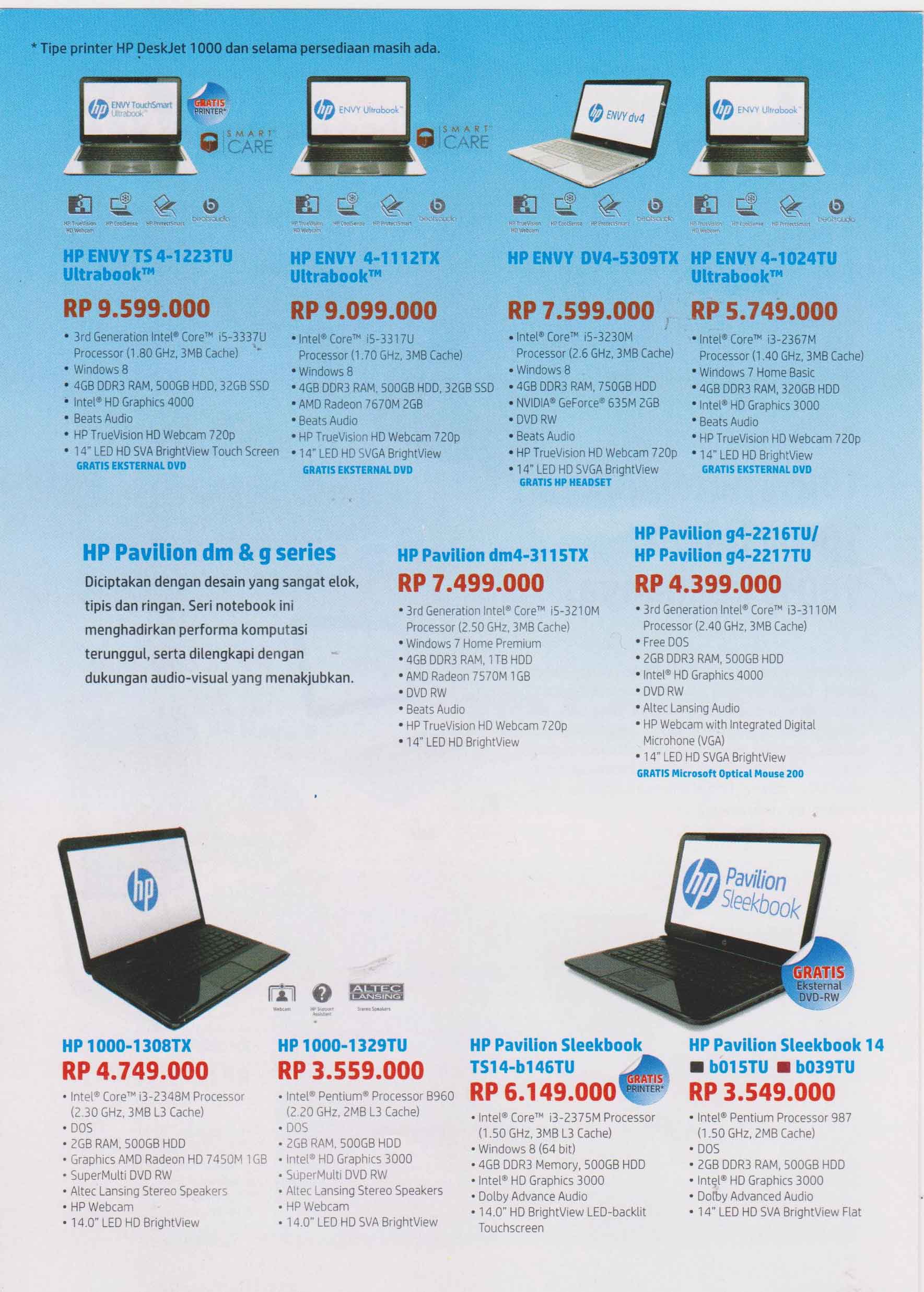 Pavilion Sleekbook 14-b015TU/b039TU: Rp 3.549.000,-