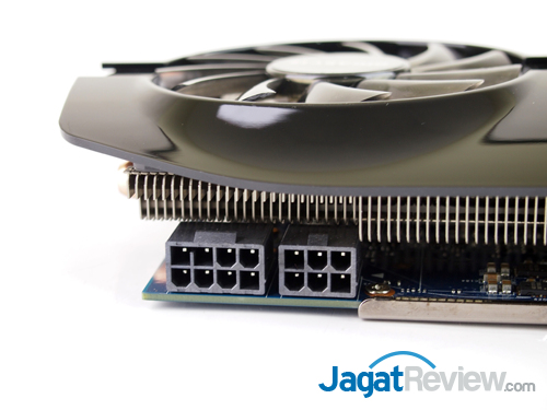 Berbeda dengan GeForce GTX 760 reference dengan 2 buah konektor daya PCIe 6-pin, Gigabyte GTX 760 Windforce 3X OC dilengkapi konektor daya PCIe 8-pin dan 6-pin. Konfigurasi seperti ini memungkinkan graphics card mendapatkan asupan daya maksimal mencapai 300 Watt. Tidak hanya itu, dengan asupan daya lebih besar Gigabyte GTX 760 Windforce 3X OC berpotensi mencapai clock lebih tinggi seperti saat melakukan overclocking.