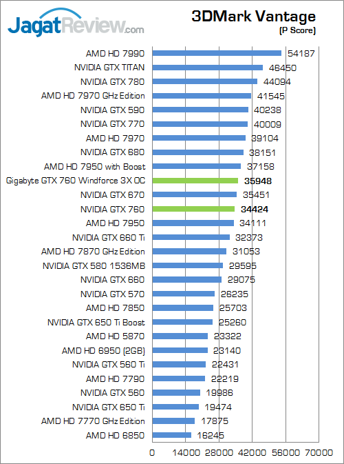 Benchmark sintesis DirectX 10 ini memperlihatkan performa GeForce GTX 760 unggul sekitar 7% di atas GeForce GTX 660 Ti dan diapit di antara Radeon HD 7950 with Boost dan Radeon HD 7950. Gigabyte GTX 760 Windforce 3X OC terlihat mampu menawarkan performa sekitar 6% di atas versi reference.